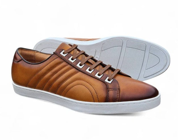 Carrucci Burnished Leather Sneaker Cognac