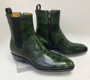 Beautiful Combination of Genuine Alligator and Supple Leather slip-on Boot from our C Collection features an Inside Zipper for easy Access. a Wheeled welt and a full Leather Sole!
